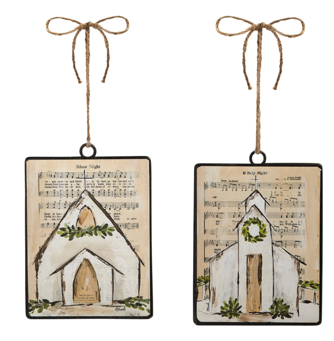Painted Church Ornament 5.5x4.5 in